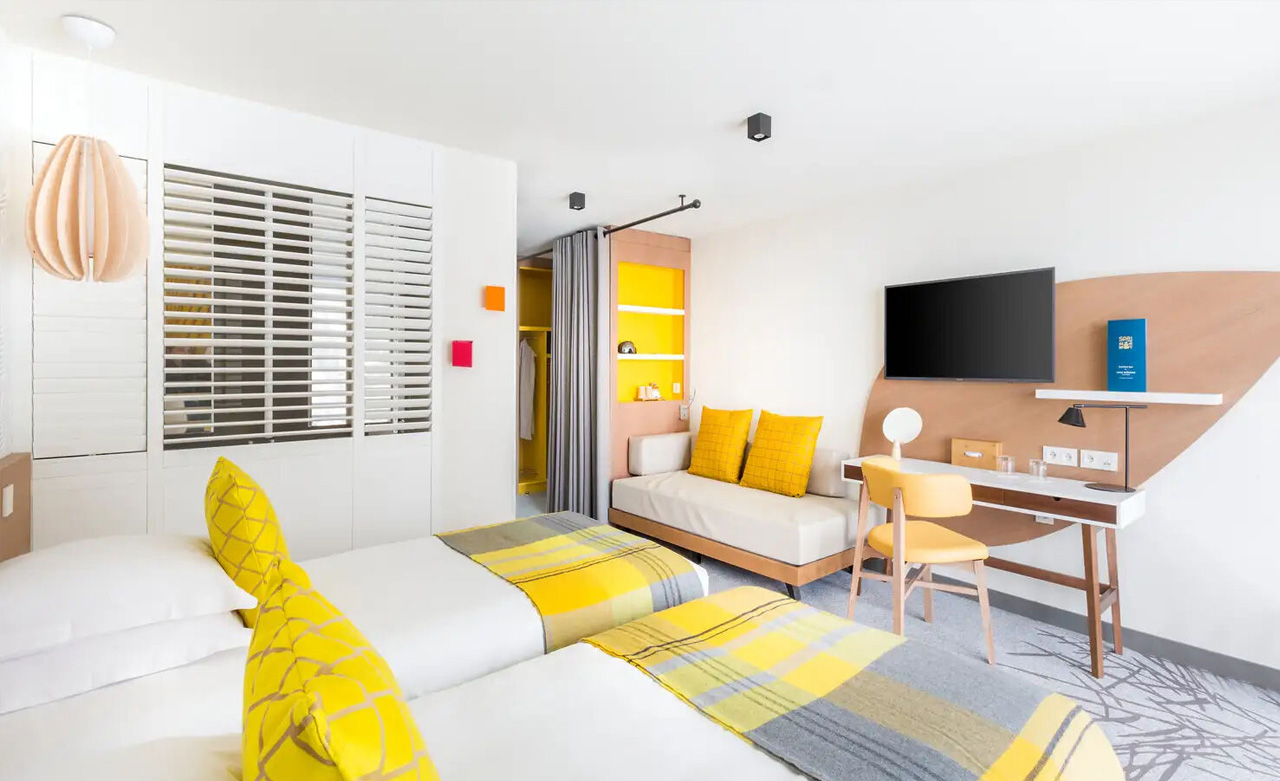 Ohne Balkon: Familien mit Kleinkindern wissen es zu schätzen, wenn für die Kleinen ein separater Schlafbereich zur Verfügung steht. Diese hellen, komfortablen Zimmer sind einfach bezaubernd. Das Design in Gelb- oder Rosatönen schafft eine moderne Atmosphäre.