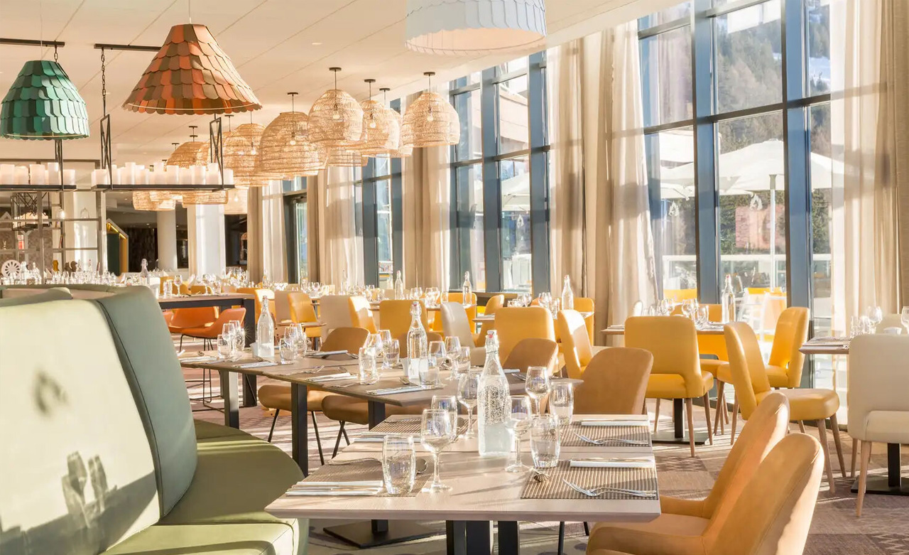 • Hauptrestaurant La Pierre Blanche Entdecken Sie die Aromen unseres Signature Buffet mit einer Auswahl an internationalen und alpinen Spezialitäten, die mit Beaufort oder cremigem Reblochon-Käse überbacken werden. Speisen Sie auf der Sonnenterrasse oder in dem stilvollen, von den Bergen inspirierten Ambiente mit Blick auf das Tarantaise-Tal.