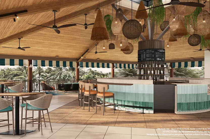 Das Santaï ist eine lebhafte Lounge am Pool, der perfekte Ort, um gemütliche
