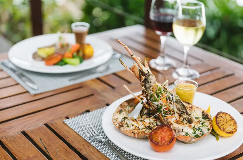 Meer und eine köstliche Speisekarte mit indonesischen und internationalen