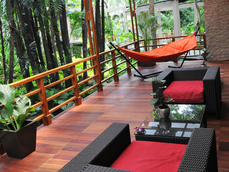 beruhigende Magie Indonesiens auf sich wirken. Möbel aus dunklem Holz und eine