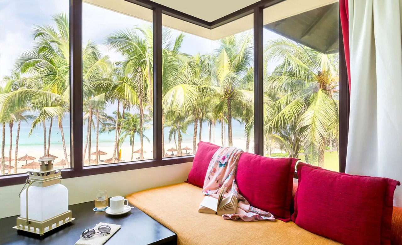 einem Zimmer, das von den ruhigen Gewässern und der lebendigen Kultur der Insel