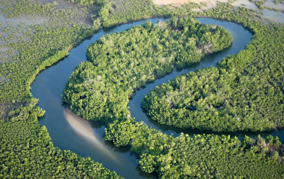 den Armen des Meeres, die sich durch die typischen Landschaften der Region