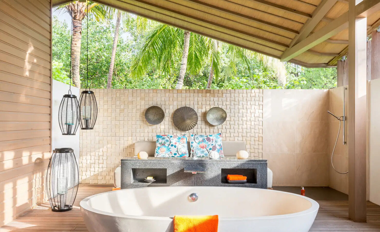 Romantiker mit einer Vorliebe für Sonnenuntergänge fühlen sich in dieser Strandvilla zu Hause: Vom Pool auf der Teakholz-Terrasse über das Badezimmer im Freien bis hin zum Al Fresco-Tagesbett. Hier erwartet Sie Luxus pur.