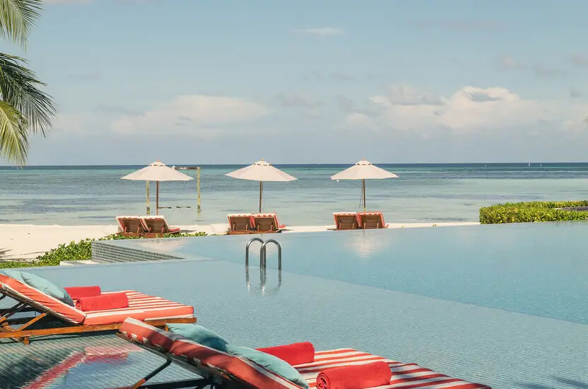 Mit Blick auf den Infinity-Pool begrüßt Sie diese farbenfrohe Bar mit individuell zusammengestellten Cocktails und fruchtigen Smoothies, die perfekt mit köstlichen Canapés kombiniert werden. Für die ultimative Entspannung am Pool können Sie sich bei Sonnenuntergang ein Glas gekühlten Champagner gönnen, und das alles bei makellosem Service.