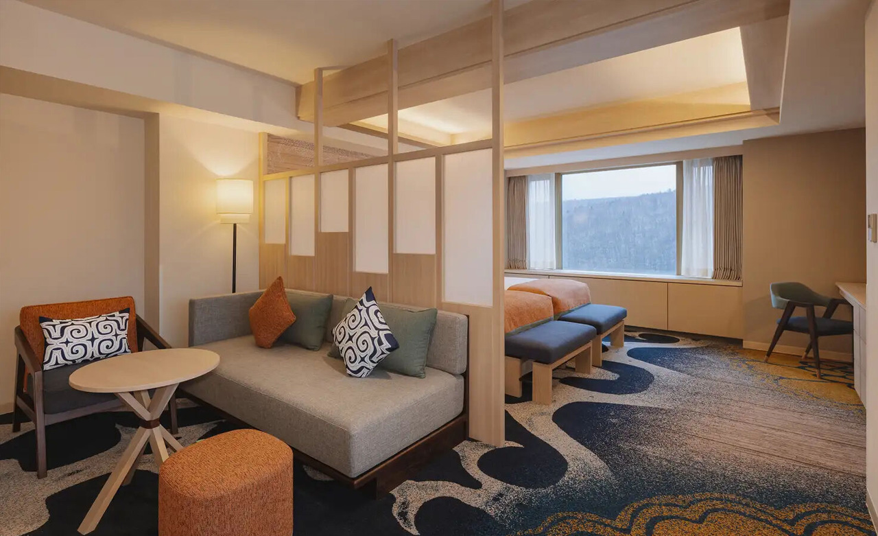 Genießen Sie ein Zimmer mit traditionellem japanischen Tatami-Boden in modernem