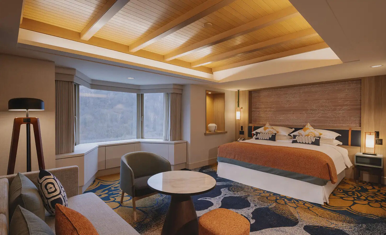 Ambiente mit Blick auf Berge und Wald. Die ideale Wahl, wenn Sie die japanische