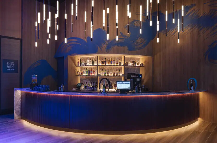 Das The View empfängt Sie in einer raffinierten und doch ungezwungenen Atmosphäre. Machen Sie es sich mit einer cremigen heißen Schokolade am Kamin gemütlich oder lassen Sie sich mit einem Cocktail an den malerischen Erkerfenstern nieder. Wenn die Sonne untergeht, geben rhythmische Beats den Ton für geselliges Beisammensein, Tanzen und Abendunterhaltung an.