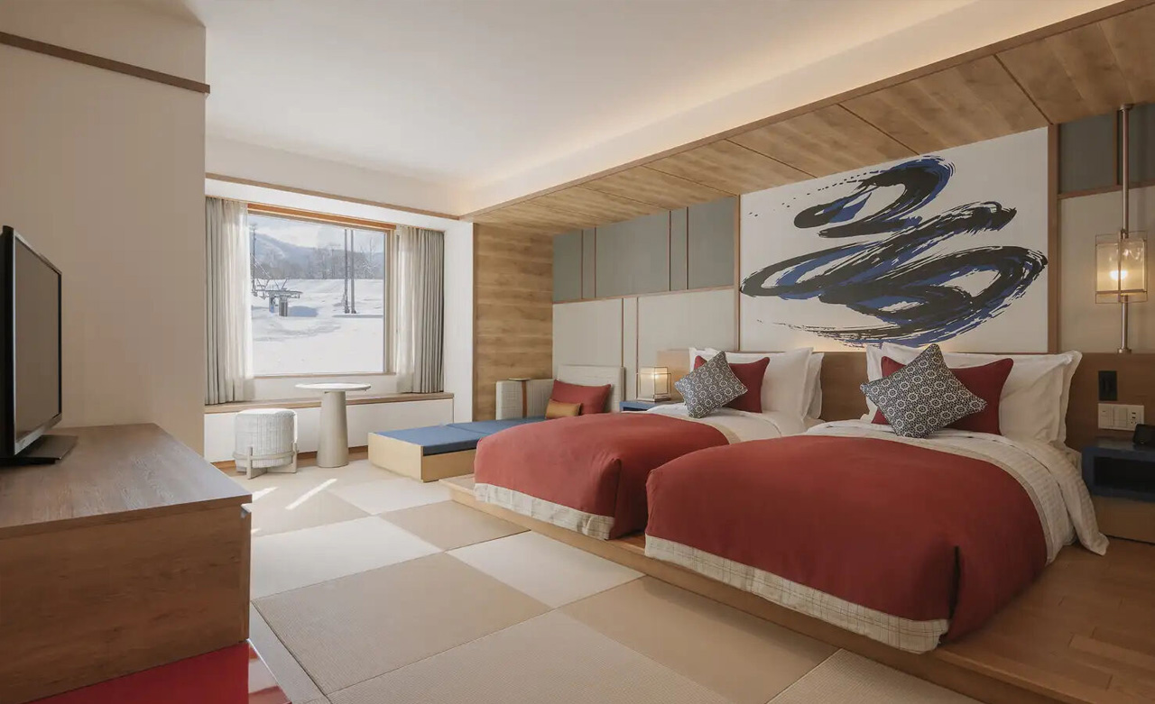 Inmitten unberührter Natur verbindet dieses Resort harmonisch traditionelle japanische Traditionen mit avantgardistischer Kunst. Jedes Zimmer ist mit Tatami-Matten ausgelegt und mit Kalligraphien verziert.
