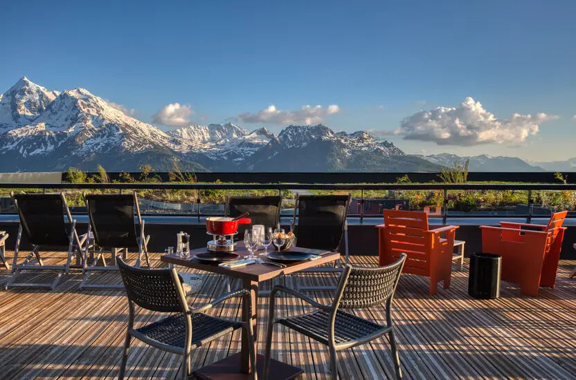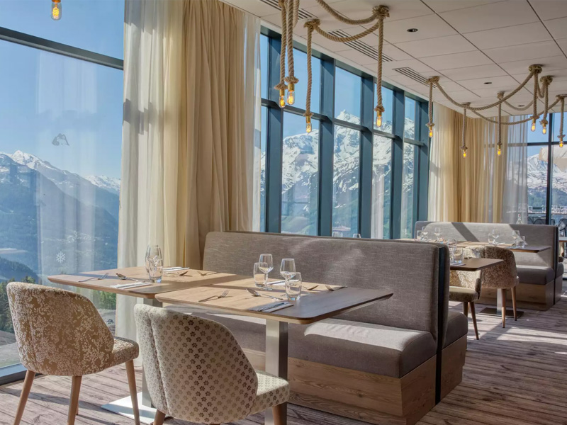 Typisch alpine Gerichte werden im modernen, bergartigen Ambiente des Mont Valezan serviert. Beginnen Sie Ihren Tag mit einem maßgeschneiderten Omelett, probieren Sie dann à la minute Grillgerichte und handwerkliche Desserts, mit atemberaubenden Blick auf die Berglandschaft.