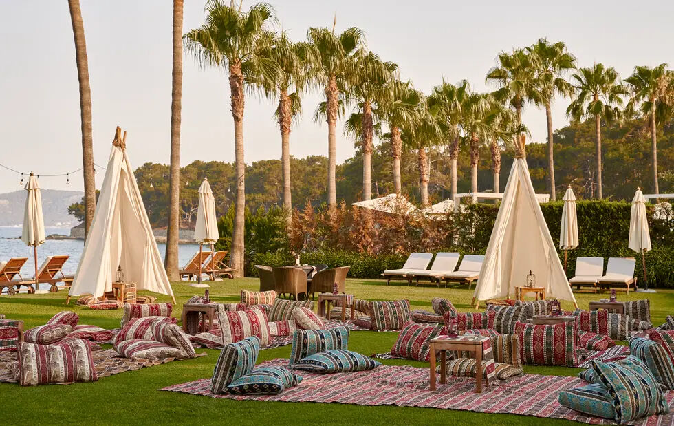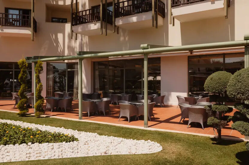 dieses unglaublichen Resorts. Ein Tisch auf der geräumigen, sonnigen Terrasse