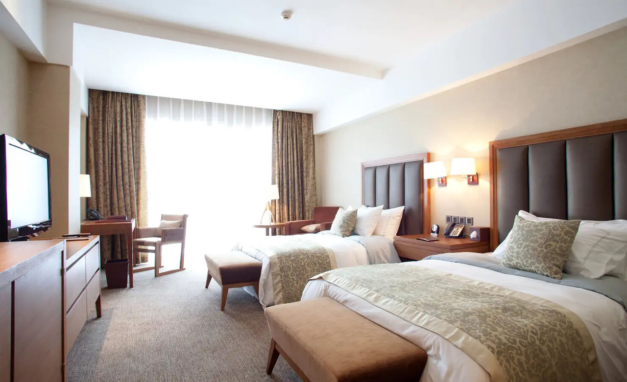 Die Beigetöne, das Lederkopfteil und die moderne Einrichtung machen die Suite zu