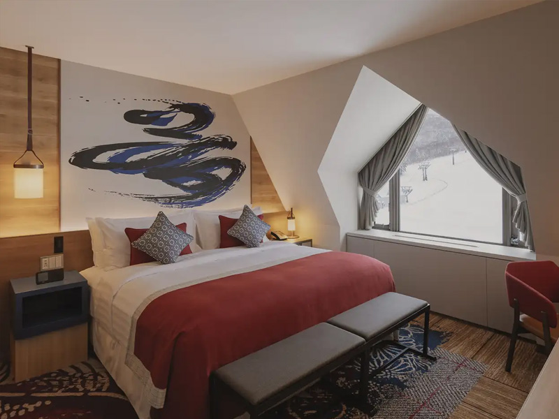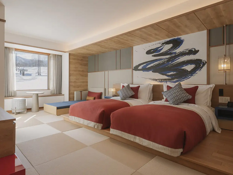 Inmitten unberührter Natur verbindet dieses Resort harmonisch traditionelle japanische Traditionen mit avantgardistischer Kunst. Jedes Zimmer ist mit Tatami-Matten ausgelegt und mit Kalligraphien verziert.