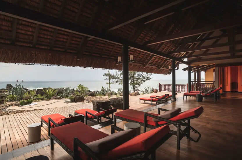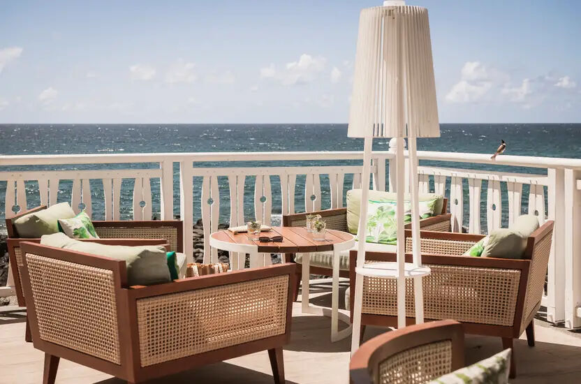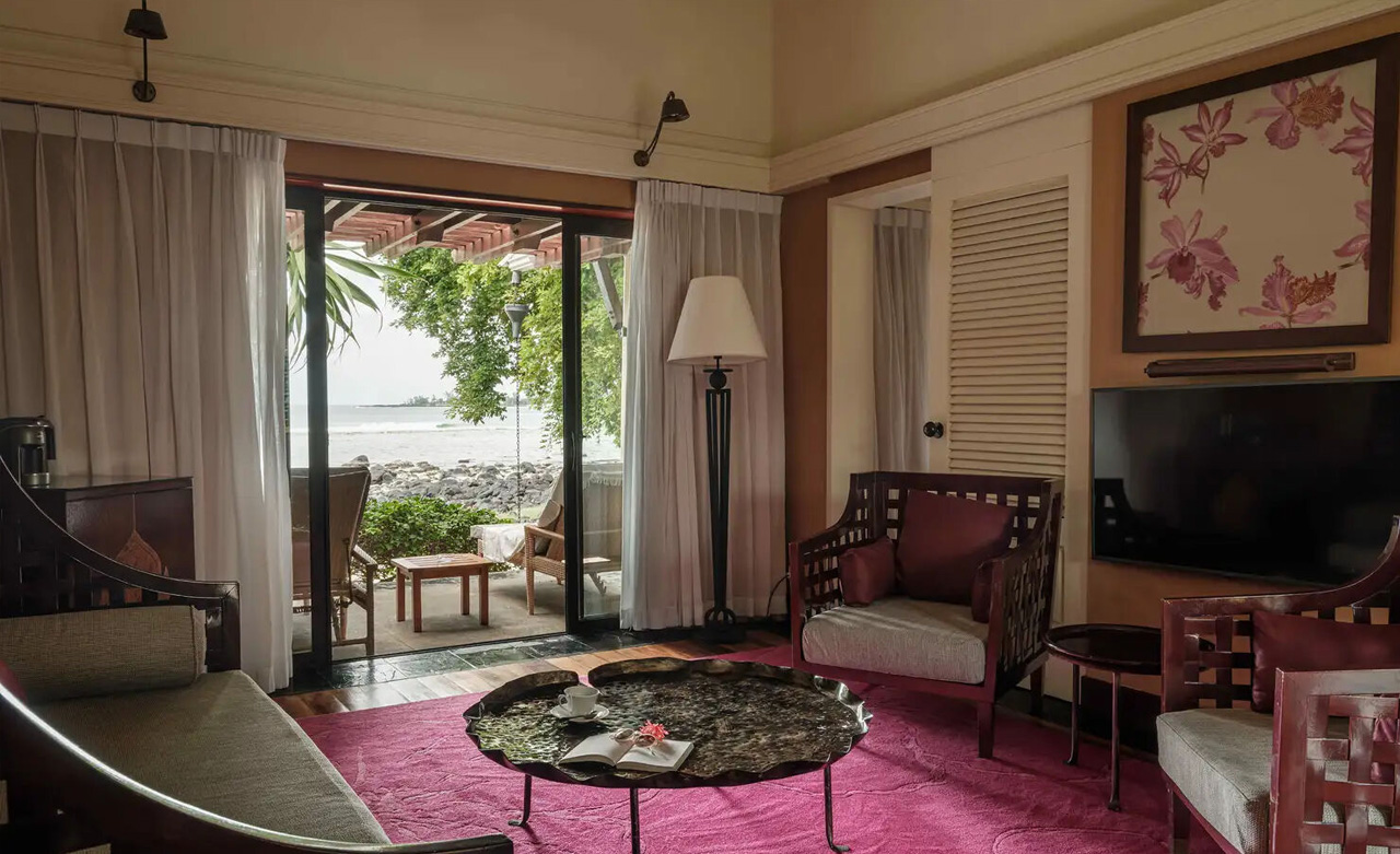 diesem einen Entspannungsraum im Kolonialstil. Mit Blick aufs Meer und modernen