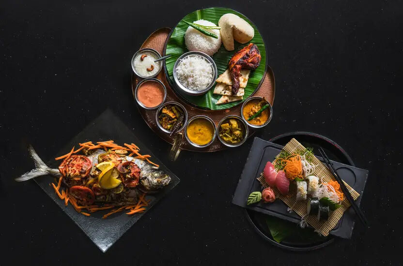 und täglich erneuerte internationale und mauritische Aromen probieren. Wählen