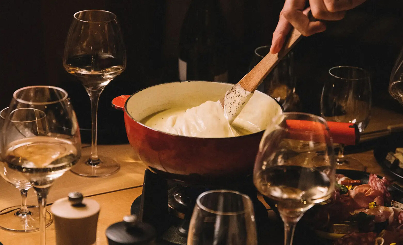 einem Glas Barolo das piemontesische Fondue mit cremigem Fontina-Käse, ein
