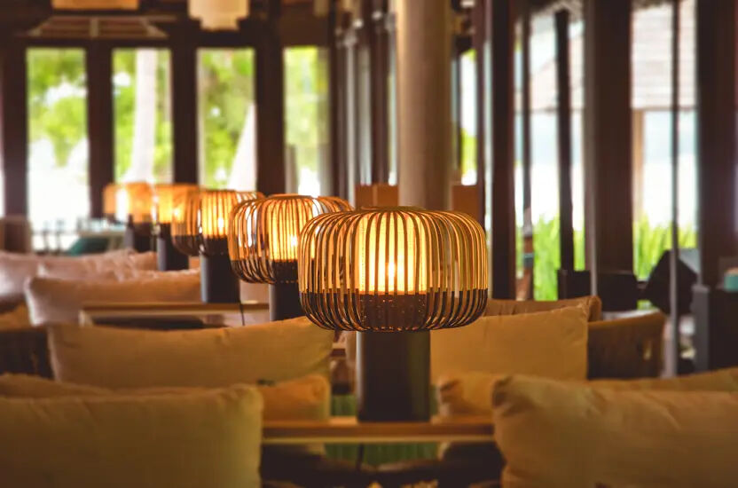 ein. Innen geben die Holztöne, der lokal hergestellte Dekor und die