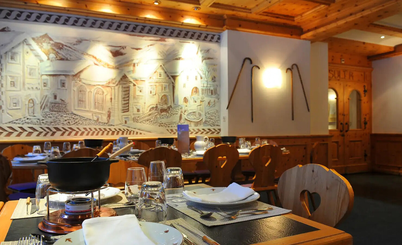 Typische alpine Gerichte werden im bergigem Ambiente des The Grischa mit einer