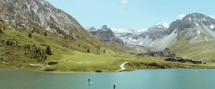 Besuchen Sie den Natursee im Zentrum von Tignes mit seinen 25 Hektar reinem Wasser. Kommen Sie und genießen Sie diesen perfekten Ort für Familien und entdecken Sie die vielen Aktivitäten, die im Sommer angeboten werden: Kanu, Kajak, Stand-up-Paddleboard - probieren Sie Wassersport in den Bergen aus.