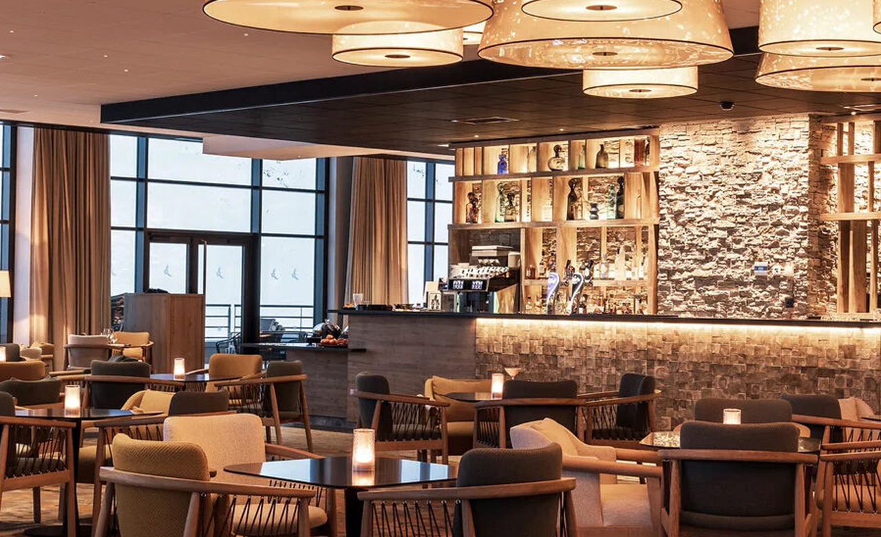 Diese einladende Bar ist der ideale Ort für Gourmet-Tee, Cocktails und Amuse-Bouches. Mit einer sonnigen Terrasse mit Blick auf die majestätischen Gipfel ist das Dekor eine warme Anspielung auf die zeitgenössische alpine Ästhetik. Begleiten Sie uns, wenn das Equinoxe mit Musik und Unterhaltung zum Leben erwacht.
