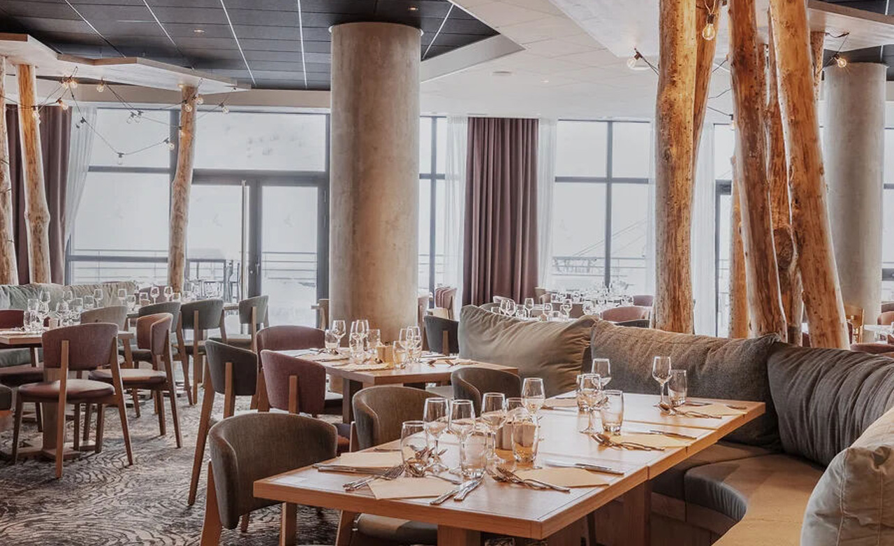 Traditionelle alpine Spezialitäten stehen im Val Claret neben einer Auswahl an internationalen Gerichten. Genießen Sie Raclette, knisternde Grillgerichte und handgemachte Desserts, während Sie die atemberaubende Aussicht auf die Berge genießen. Genießen Sie Ihre Mahlzeit auf der Terrasse oder in einem schicken Ambiente, das von den Landschaften von Tignes inspiriert ist.