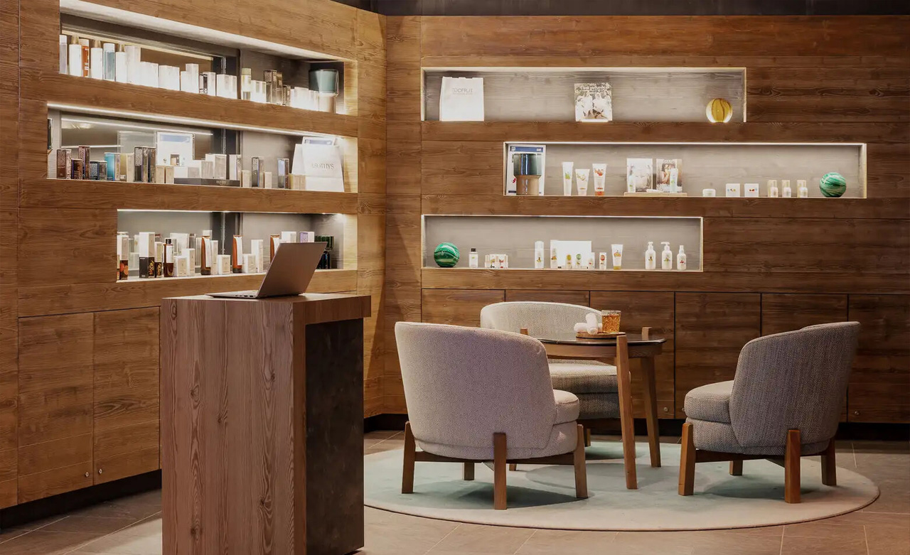 Helles Holz, sanfte Farben, minimalistische Dekoration: alles ist darauf ausgerichtet, Entspannung und Wohlbefinden zu fördern. Tauchen Sie ein in die beruhigende und vitalisierende Atmosphäre unseres Sothys Spa. Gönnen Sie sich eine entspannende Auszeit und genießen Sie eine Behandlung oder eine Massage, bevor Sie sich in der Sauna oder im türkischen Bad erholen.