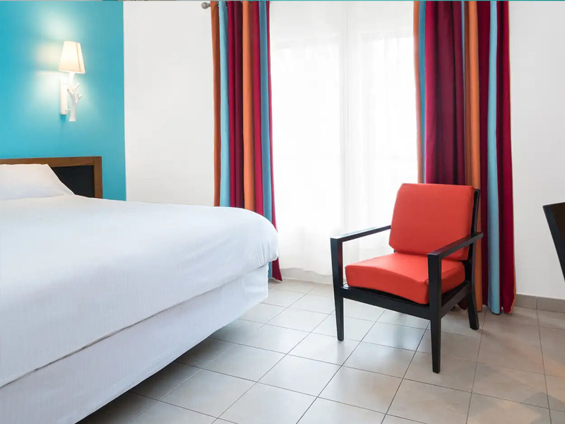 Die vom Ozean inspirierte Farbenpracht des Interieurs verleiht den hellen und frischen Zimmern, die nur wenige Schritte von unberührten weißen Sandstränden entfernt sind, ein typisch karibisches Ambiente.